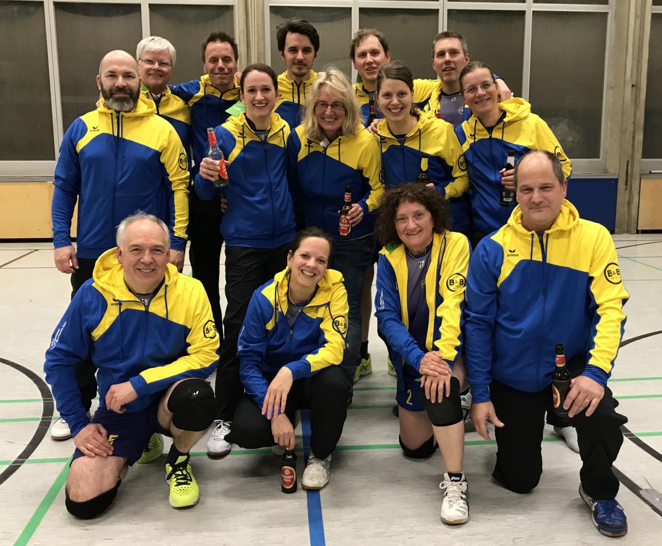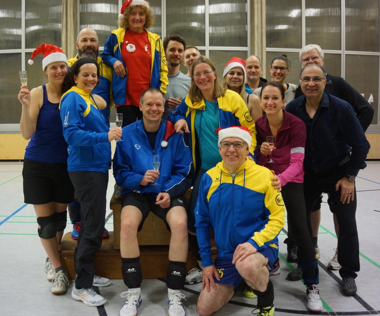 Wir sind eine nette Volleyball-Mixed-Truppe zwischen 23 und 64 Jahren. Unser Training ist einmal pro Woche und wird von einem sympathischen Profi-Trainer geleitet. In der ersten Trainingshälfte wird geübt und an der Technik gefeilt. Die zweite Hälfte steht meist für freies Spielen zur Verfügung. Aktuell spielen wir in der Bezirksklasse der Hobby-Mixed-Runde des Westdeutschen Volleyballverbandes.